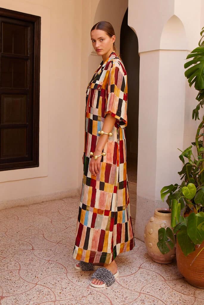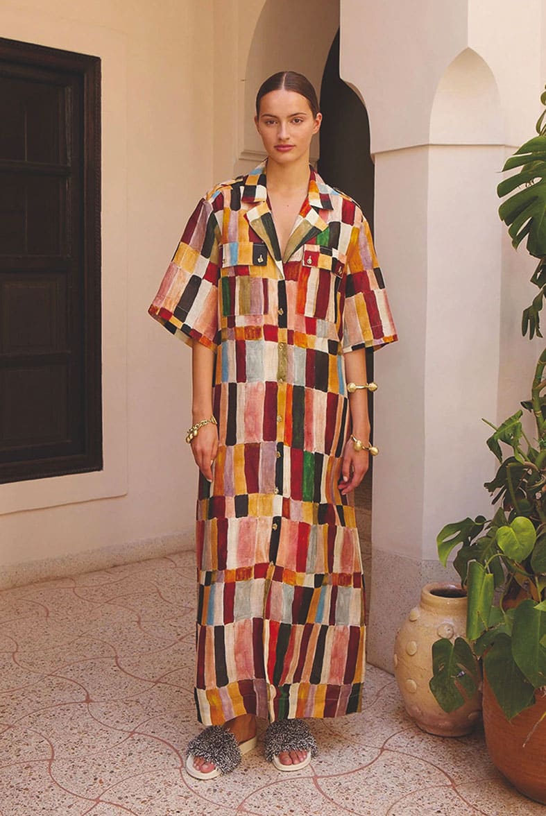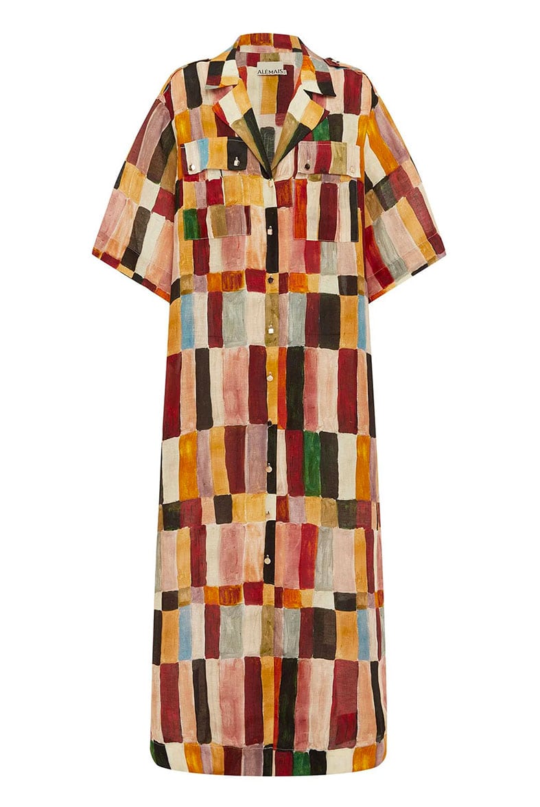 MARJORELLE SHIRTDRESS is a relaxed shirtdress with self-covered rouleau belt included, pointed collar and stand and patch pockets with bespoke metal buttons.
