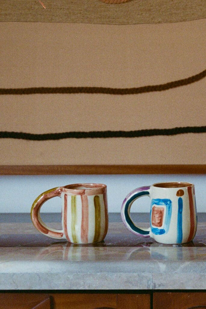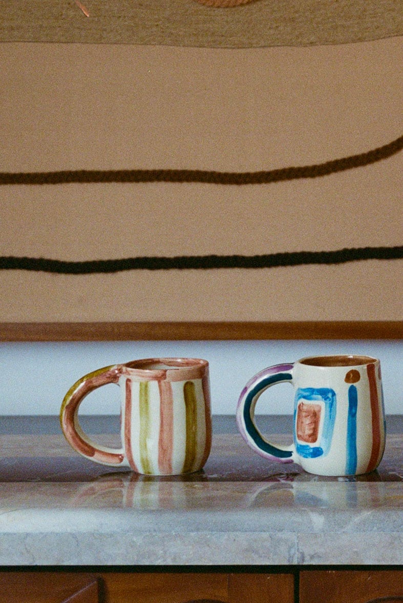 PHIL MUGS are hand-made in Marrakech, Morocco using traditional ceramic techniques. Each mug has been hand-drawn by Laurence using pigments and stick.