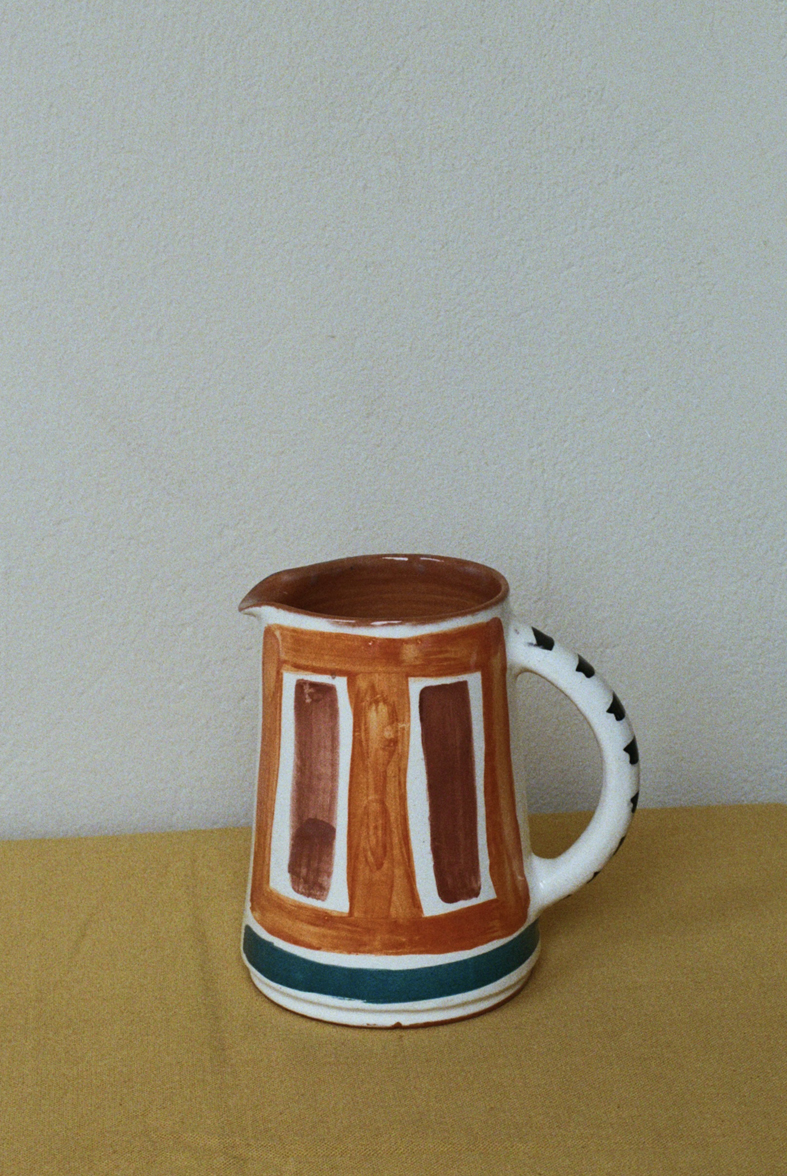 ZELLIGE JUG is hand-made in Marrakech, Morocco using traditional ceramic techniques. The jug has been hand-drawn by Laurence using pigments and stick.