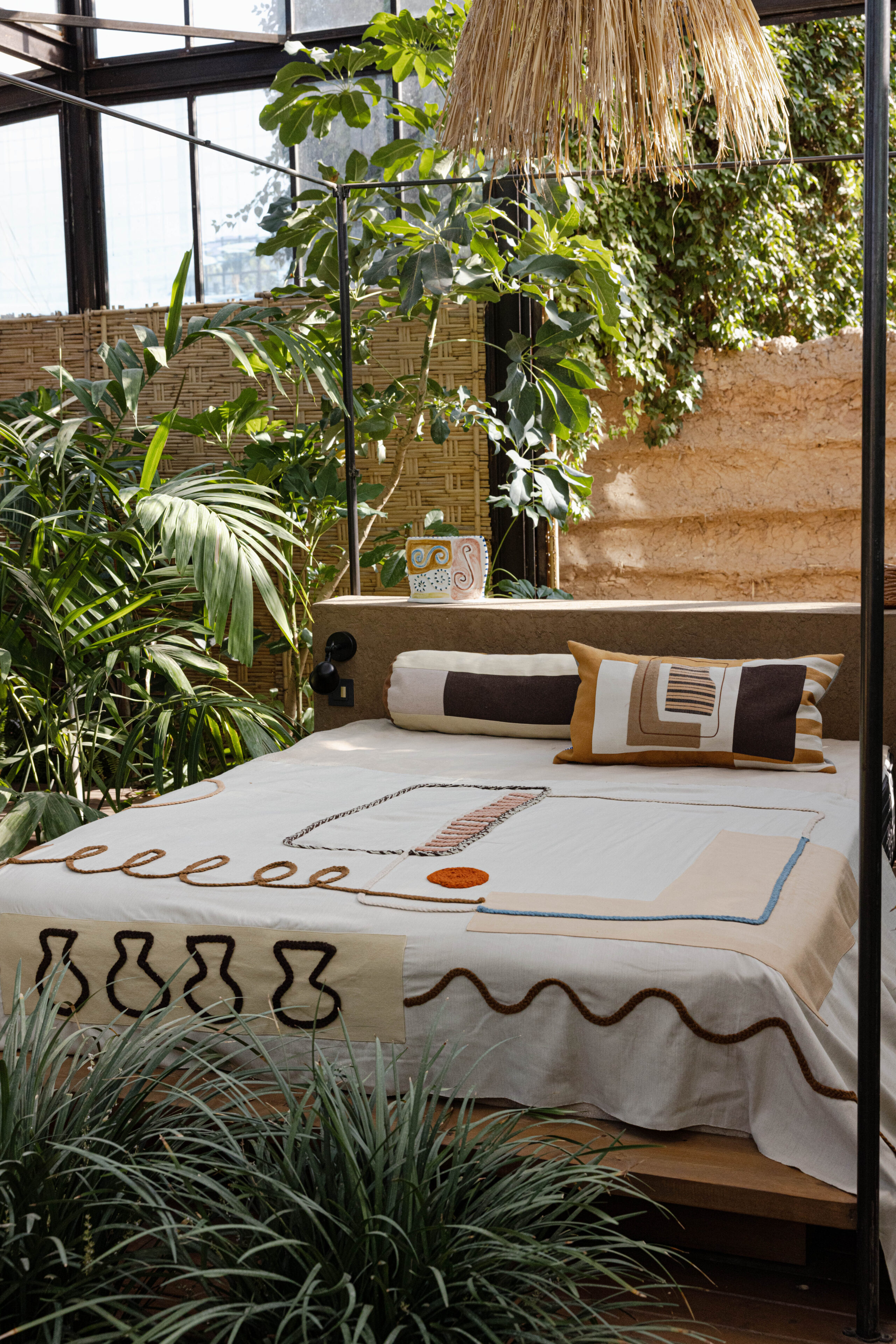 Wool and cotton base / Stitched cotton and wool design / Wool embroidery. Refer to our care page for more information.