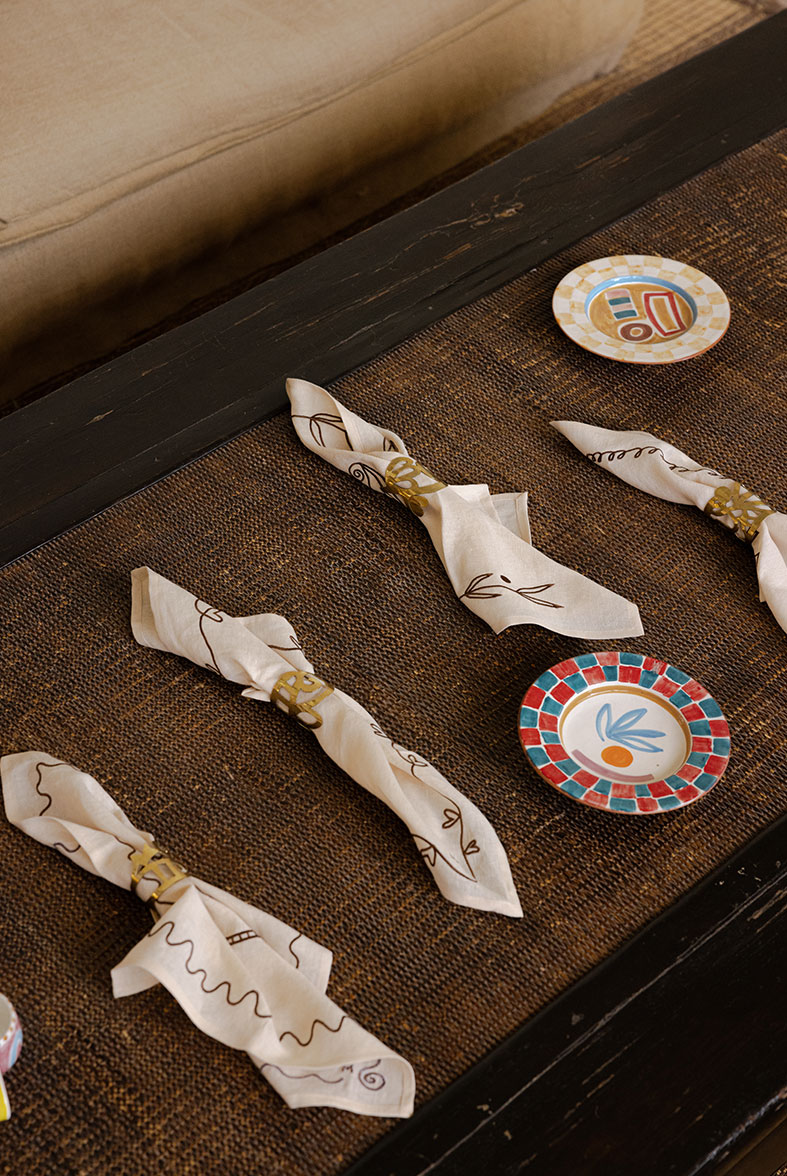Our table linen is designed in the LRNCE studio. All of our pieces are made from cotton, linen or a combination of the two and feature embroidered hand-drawn designs or block-printed motifs.
